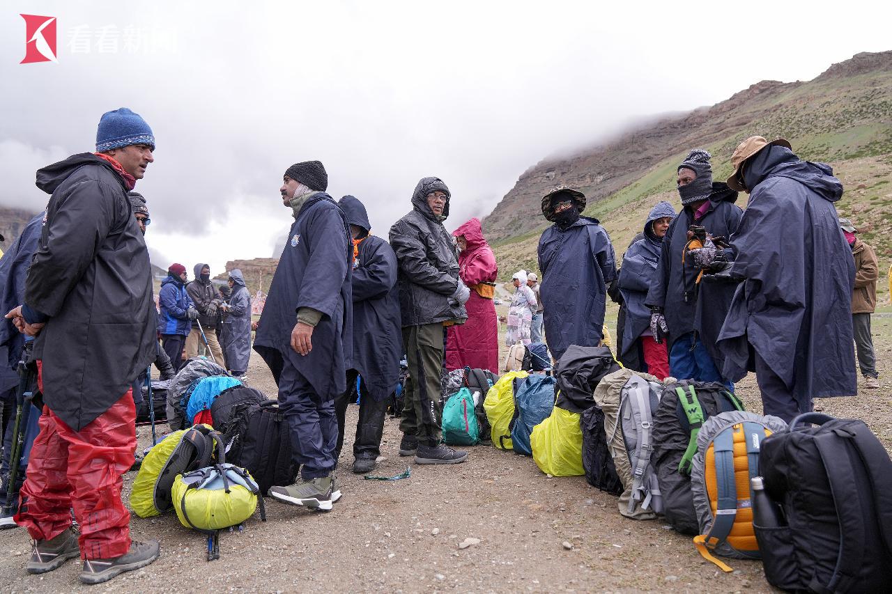 2025年7月,来自印度的徒步旅行者在做出发前的准备工作。