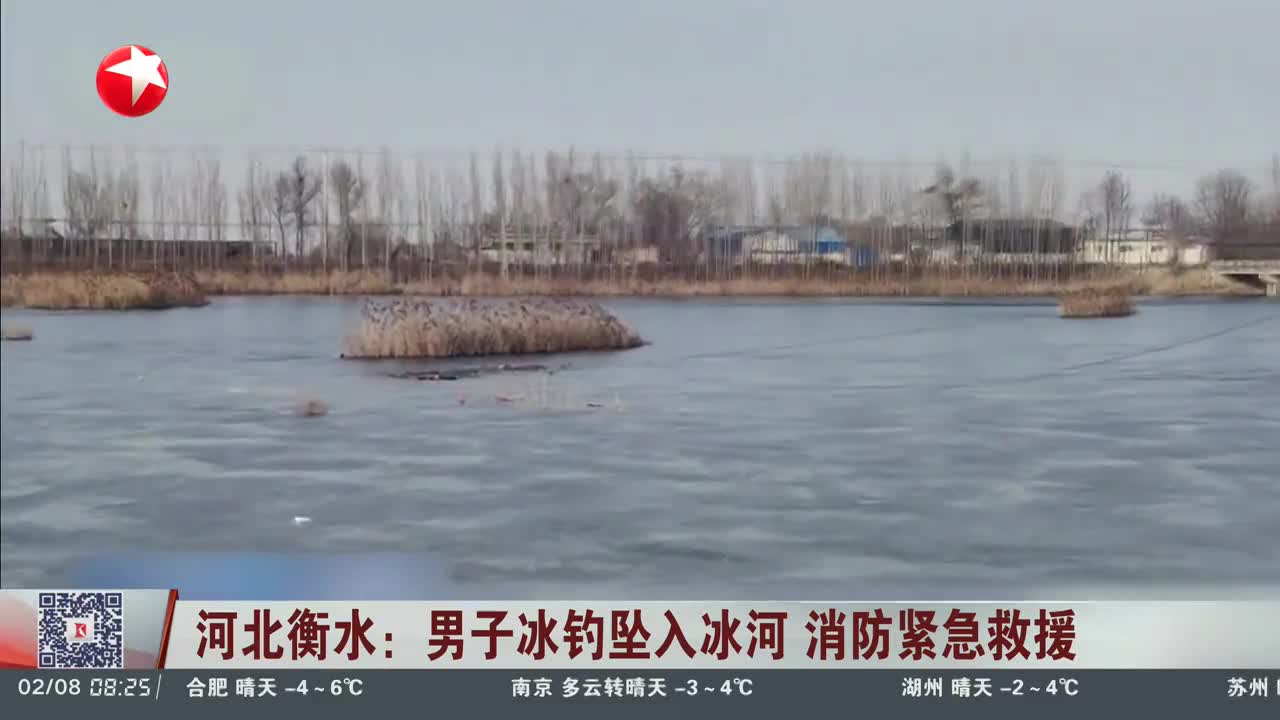 河北衡水:男子冰钓坠入冰河 消防紧急救援