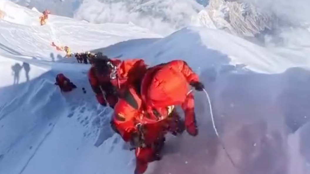上山的路全是碎石和冰碴,这一走,就是两个小时。等爬到山顶时,两人都瘫在地上。