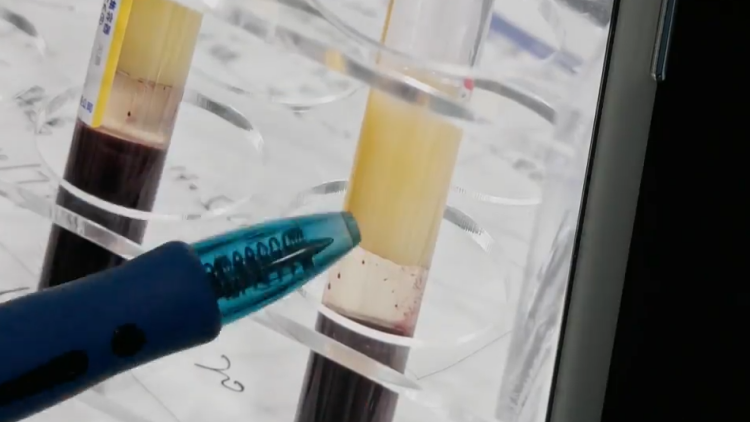 上海儿童医学中心临床研究病区内,10岁的合肥女孩依依,正等待接受一项新药物的临床试验。她的血液化验照片显示,抽出的血液中悬浮着一层乳黄色厚油脂,直观呈现出“高乳糜微粒血症”这一罕见病的可怕。
