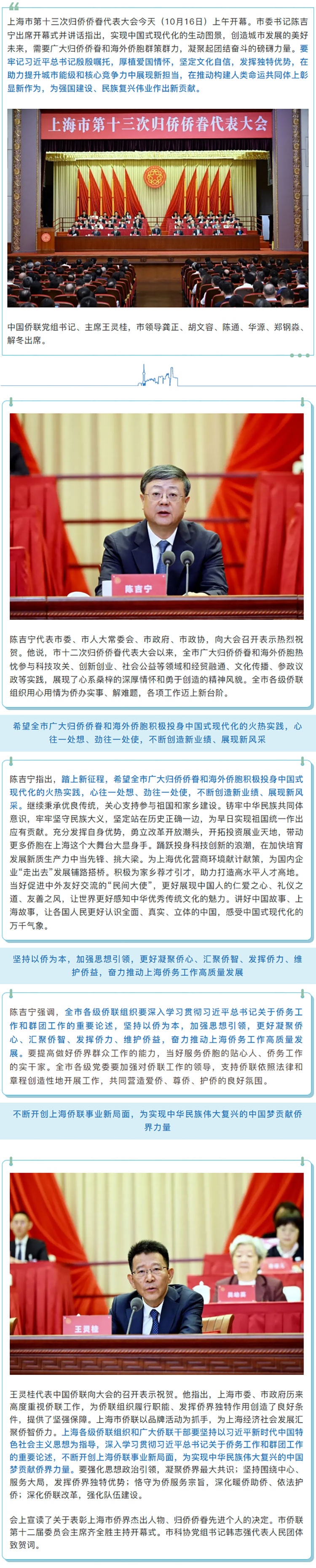 厚植爱国情怀,坚定文化自信,发挥独特优势!上海市第十三次归侨侨眷代表大会开幕,陈吉宁出席并讲话