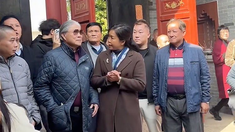 12月27日,霍震霆来到佛山三水董营村霍氏宗祠上香祭拜。