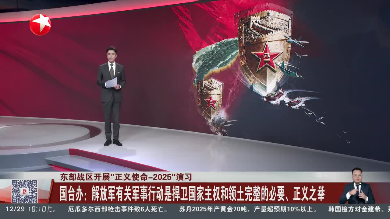 有记者问:中国人民解放军东部战区于12月29日开始组织陆军、海军、空军、火箭军等兵力,位台岛周边开展“正义使命-2025”演习。对此有何评论?