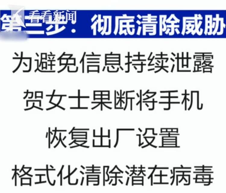 贺女士立即展开自救,她先拔掉了手机卡,随后切断网络,阻止进一步操控。然后用丈夫的手机,将银行卡资金转入未绑定线上支付的账户。因为转账有限额,她又解绑了所有银行卡,锁死了资金通道。接着,贺女士将手机恢复了出厂设置,清除了病毒。最后一步,她赶往当地派出所报了案。
