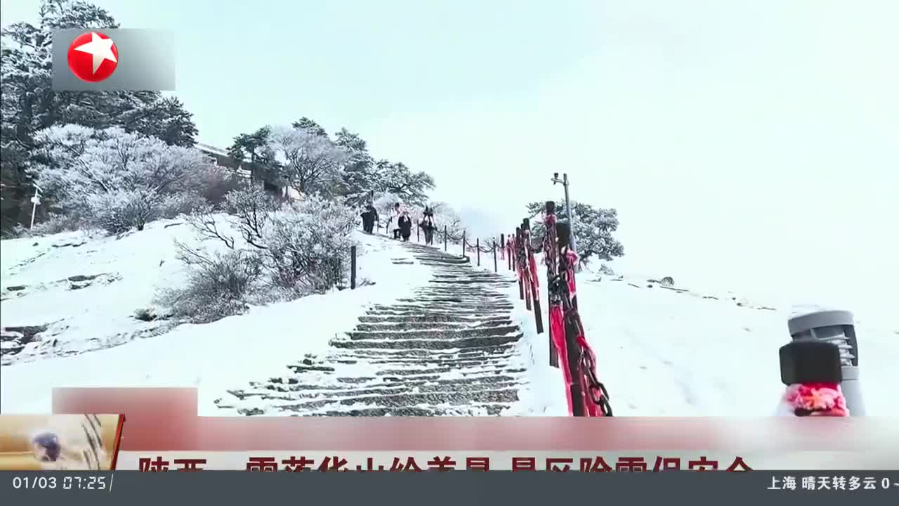 陕西:雪落华山绘美景 景区除雪保安全