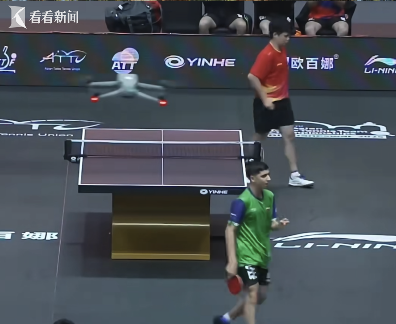 比赛途中,一架直升机在选手头顶飞过,解说员表示第一次遇到这种情况。亚锦赛主场馆由室内田径场临时改造,跑道环绕球台,开赛前48小时仍在铺设地胶,部分区域地胶薄至透光且散发刺鼻气味,存在严重安全隐患。场馆内青蛙乱窜、飞虫成群,鸟粪曾掉落比赛球台。