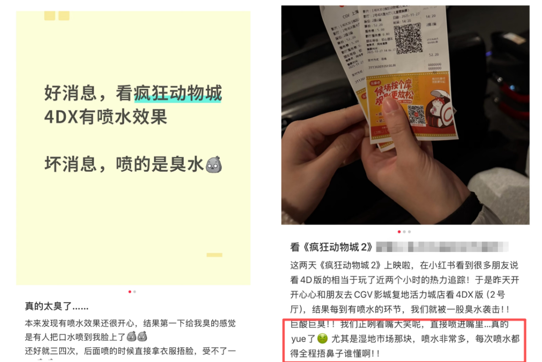 记者多方了解到,购买《疯狂动物城2》4D电影票却被"臭水滋一脸"的消费者确实存在,不过并非普遍现象,然而一旦遇到,就是大家共性感受到的"臭抹布味"。