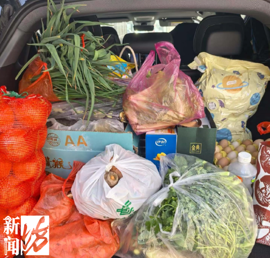 马陆镇希望片区居民胡雪峰告诉记者,父母大晚上从自家地里摘的,蒜苗香菜还有胡萝卜,“这些新鲜的蔬菜都是父母算好我出发的时间特意准备的,每一样都是对于我一种沉甸甸的爱,让我能够带着这份沉甸甸的爱 奔赴新一年的生活”