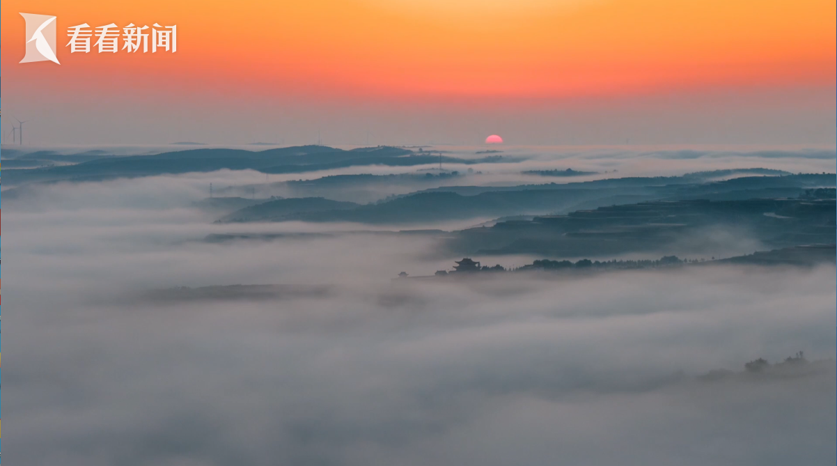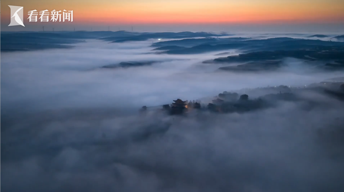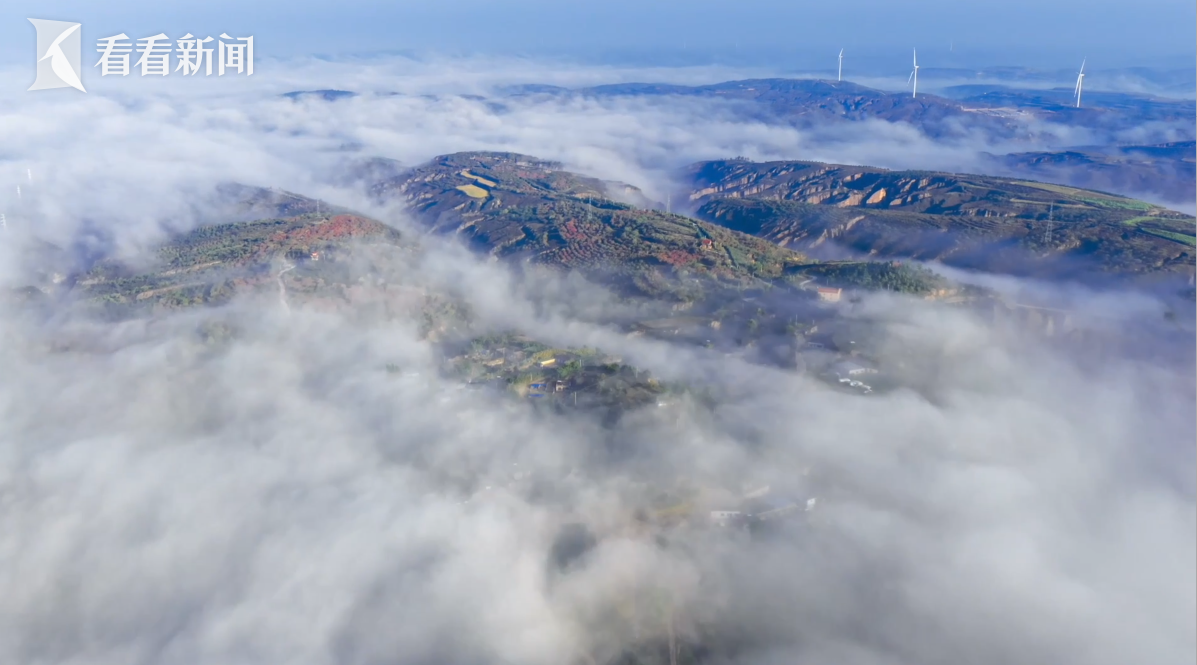 初冬时节,地处黄土高原的陕西榆林市榆阳区古塔镇杏树岭景区烟雾缭绕,梦幻缥缈。