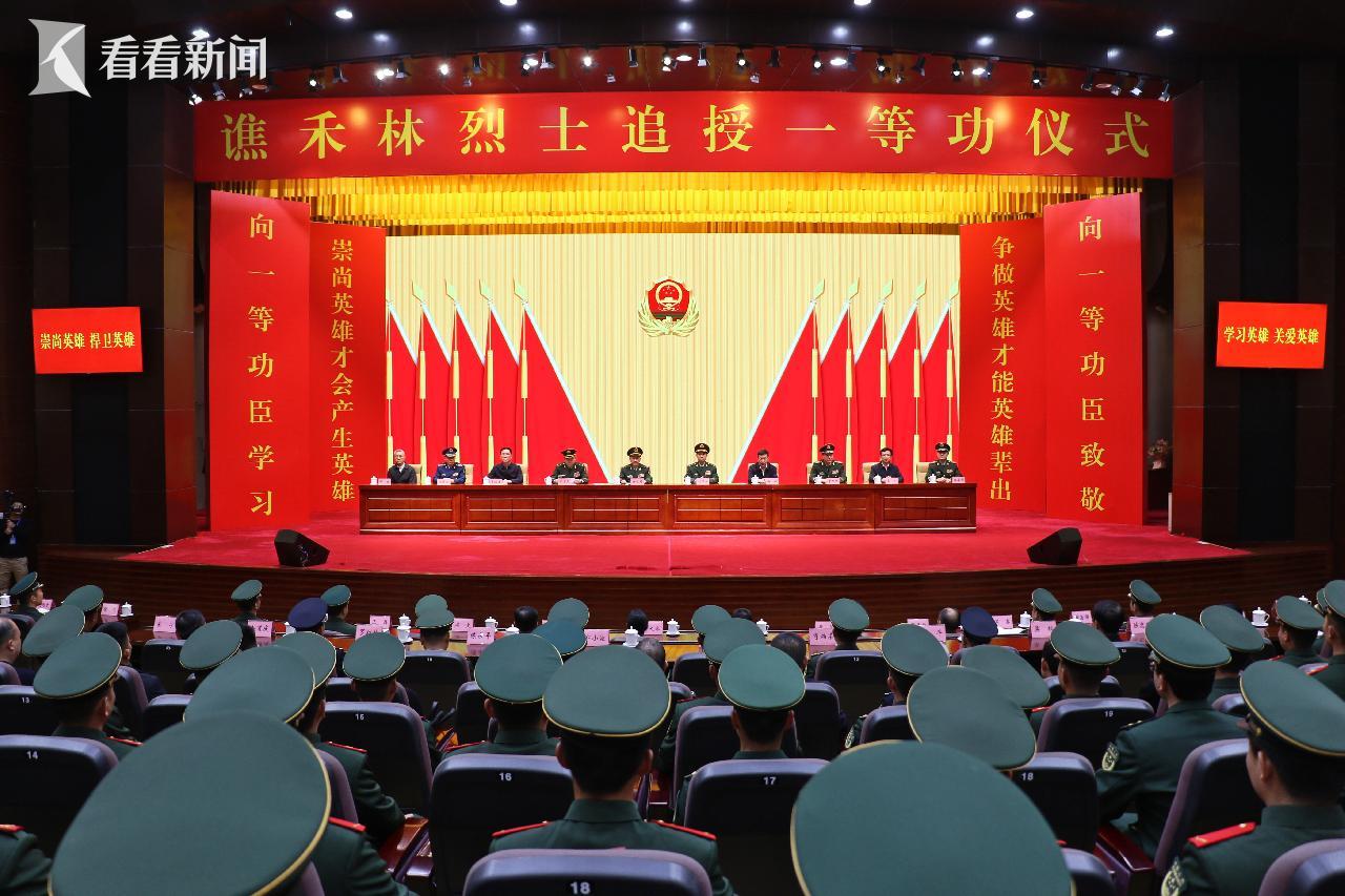 仪式现场,全体人员脱帽默哀。仪式上,宣读了《关于给谯禾林同志追记一等功的通令》和烈士评定批复,向谯禾林烈士父母颁发荣誉奖章证书,高度褒扬谯禾林烈士的英雄壮举,对进一步学习英雄事迹、弘扬英雄精神、有效履行使命提出了殷切期望。