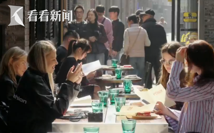 中午11点,新天地人气爆棚,尤其是各家知名餐厅,外摆位都已经基本坐满,有的餐厅门口排起了等位的队伍。许多人是冲着这里汇聚的环球美食来的。