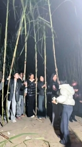 活动开启第一晚,就来了三四批游客。童鹏飞在甘蔗地里追了半宿,一个“小偷”都没逮到。于是,他雇了本村六十多岁的童大爷和他的两条小狗充当捕快。但“抓捕”效果依旧“不理想”。有游客带着甘蔗走的时候甚至嘲讽说,你们抓人效率太低了,汗都没出就“偷”到了。