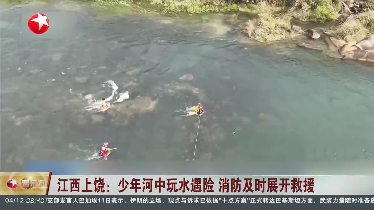 江西上饶:少年河中玩水遇险 消防及时展开救援