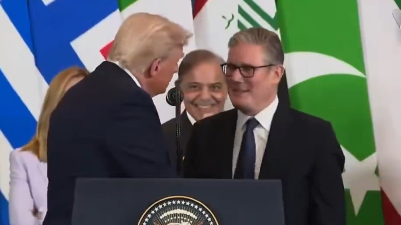 当地时间13日,美国总统特朗普在埃及与法国总统马克龙会面,特朗普用力握住马克龙的手,期间互相拉扯手臂,还换了几次握法,整个握手过程长达26秒。