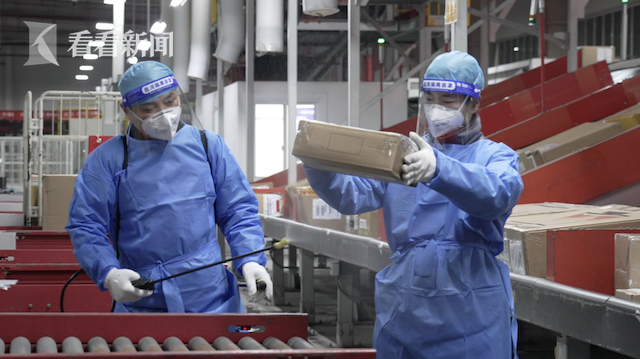 上海浦东机场货运区域目前有7千多名员工驻场封闭作业,持续保证24小时备勤。封控期间,机场货站组建专班,重点保障涉及民生的进口冷链生鲜货物高效处理。