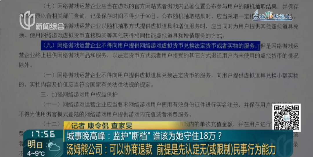 杨邹华建议,“居委会应当跨前一步,作为她的临时监护人和汤姆熊进行交涉,然后要暂停使用这位女士相应消费的银行,也不能继续去充钱,防止损失的扩大。”