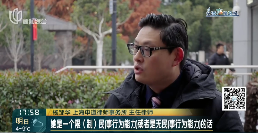但是如果说这位女士她已经就是确认是一个残疾人,包括将来确认过她是一个"限民"(限制民事行为能力人)或者是"无民"(无民事行为能力人)的话,在这种情况下,她进行这么大额的一些消费的话,我个人认为是超出了她的民事的行为能力的。