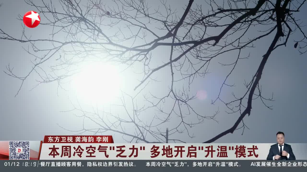 上海中心气象台预报员 张久正:本周回暖的趋势十分明显,这主要是由于冷空气的活动位置整体偏北,同时本市以晴好的天气为主,无降水。我们预计本周的最高气温可达19~20度,预计下周天气将出现转折,本市将有一次大风降温和降水的天气。