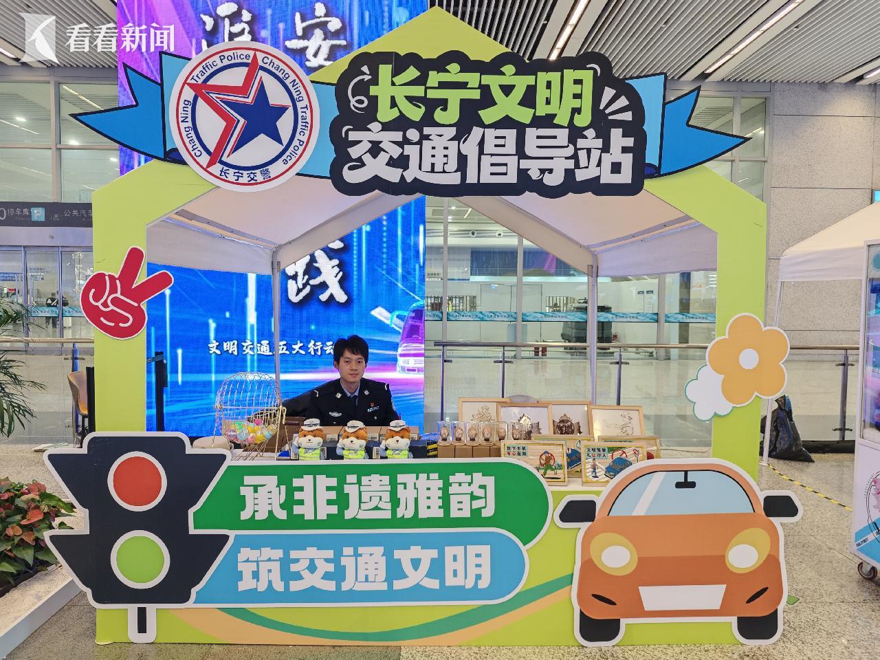 启动仪式后,现场还设置了丰富的互动体验环节。文明交通游戏互动区设有快乐大转盘、抓娃娃机、交通标识猜谜等趣味游戏;交通科技体验区展示了公安交通管理的高科技警用设备、警用无人机、安全驾驶AR、酒驾测试眼镜等设备;文明实践快闪店则集中展示了虹桥机场、虹桥火车站等窗口单位的文明实践成果。现场特别设置的展示区内,应用了“小电视交警”表情包文明标语的主题痛公交车实物尤为引人注目,市民纷纷驻足合影,成为连接线上宣传与线下体验的生动载体。这些互动体验不同于传统的宣教方式,让市民在参与中理解文明交通的重要性,让文明交通理念“听得进、记得住”。
