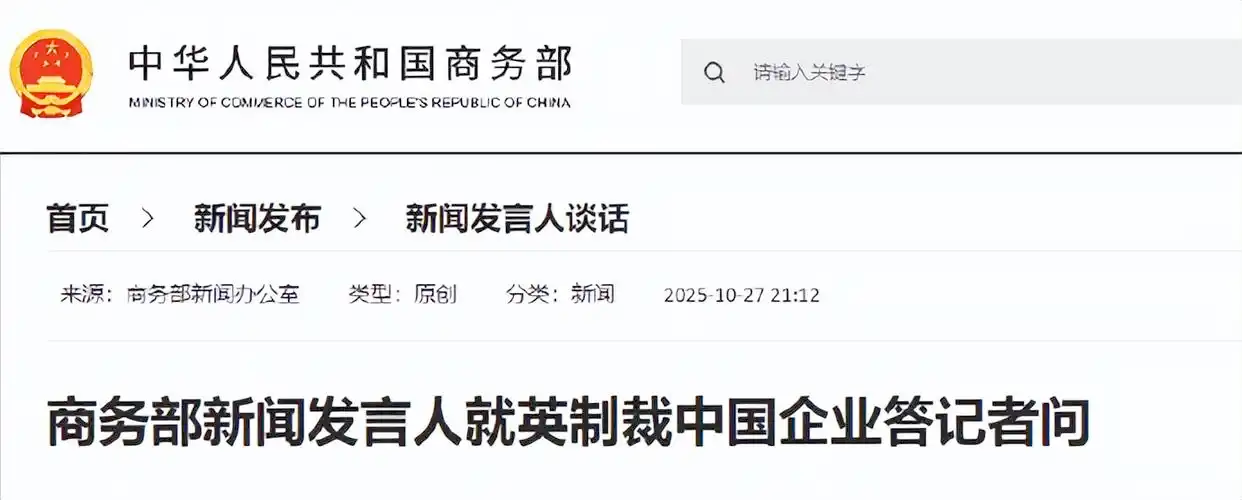 据商务部官网10月27日消息:商务部新闻发言人就英制裁中国企业答记者问。问:10月15日,英国外交部宣布新一轮涉俄制裁,其中被制裁的中国企业有11家。请问中方对此有何评论?