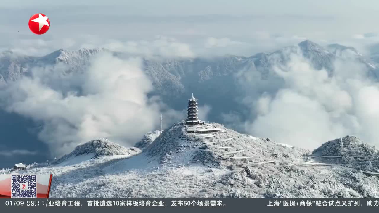 四川多地迎新年首场降雪 景区化身冰雪乐园