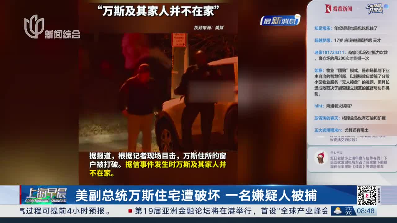 美副总统万斯住宅遭破坏 一名嫌疑人被捕