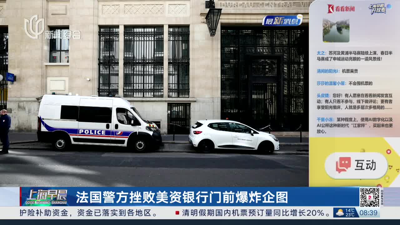 法国警方挫败美资银行门前爆炸企图
