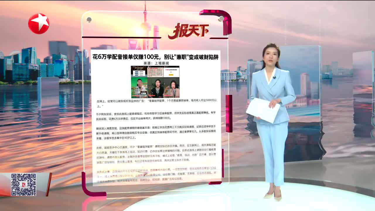 花6万学配音接单仅赚100元,别让“兼职”变成破财陷阱