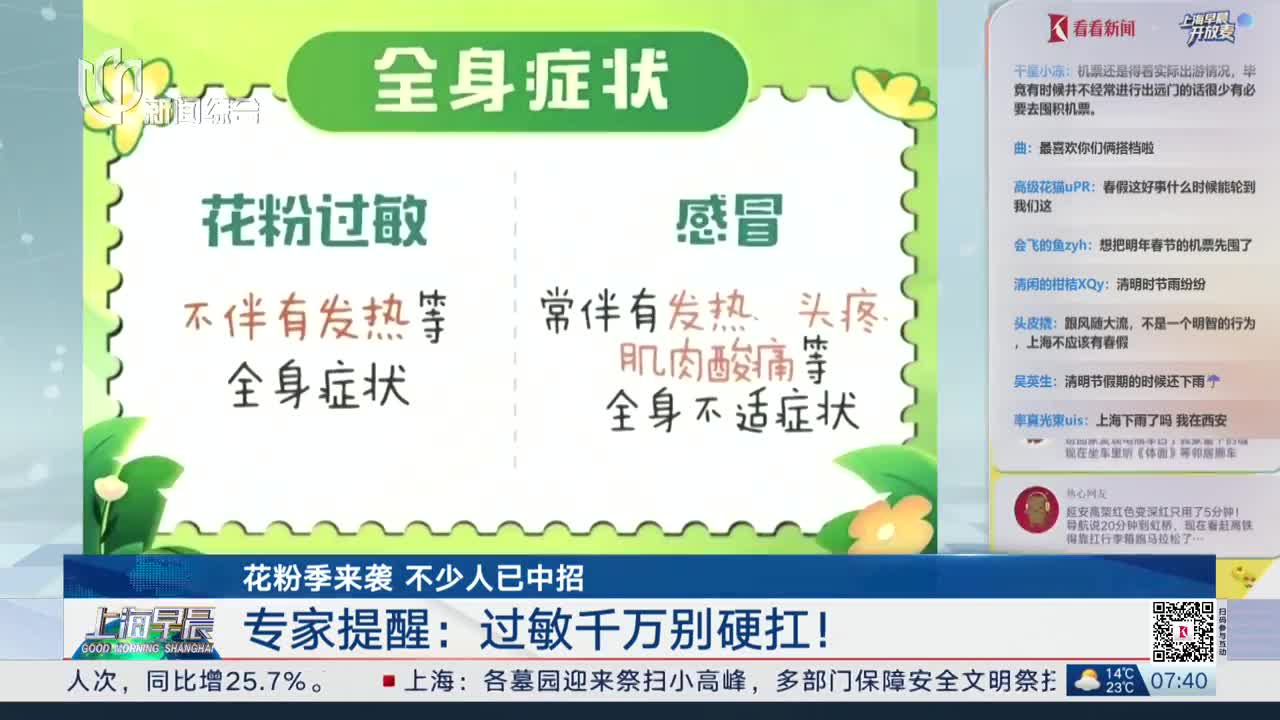 花粉季来袭 不少人已中招 专家提醒:过敏千万别硬扛!