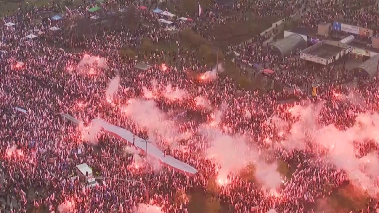 英媒则称当天除支持巴勒斯坦外,该游行还为了让大家关注气候变化,有数千人参加。