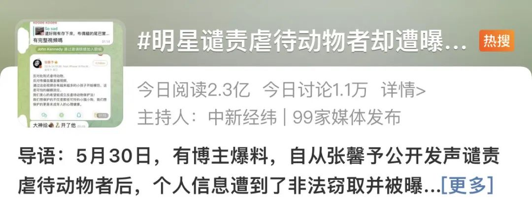 @网友:虐待动物本身就已经是引起众怒的行为,人肉他人的隐私信息更是游走在法律边缘。