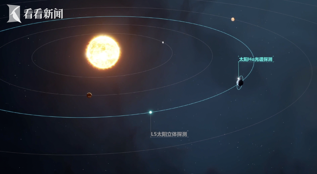 “羲和号”环绕地球运行,“羲和二号”则不是。“羲和号”科学与应用系统总设计师、南京大学天文与空间科学学院教授李川介绍,太阳和地球有5处引力平衡点,L1、L2、L3在日地连线上,L4、L5则在地球环绕太阳运行的轨道上,各自与太阳、地球构成边长约1.5亿公里的等边三角形,如果将地球公转方向视作“前方”,L5在地球的“身后”。