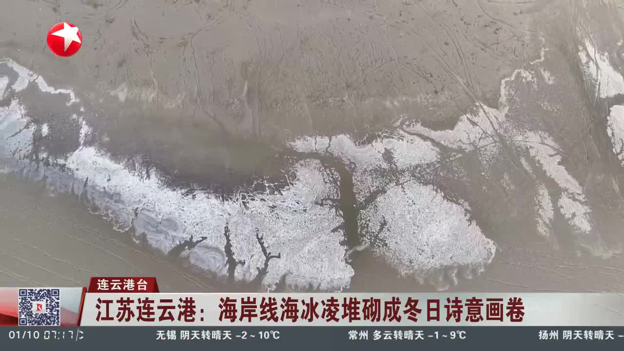 江苏连云港:海岸线海冰凌堆砌成冬日诗意画卷