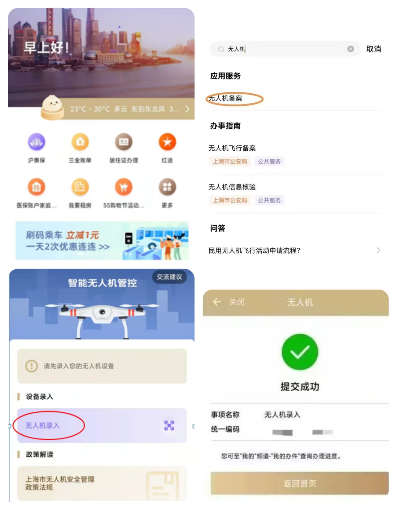 在“随申办”的“无人机管控”小程序中进行实名登记。