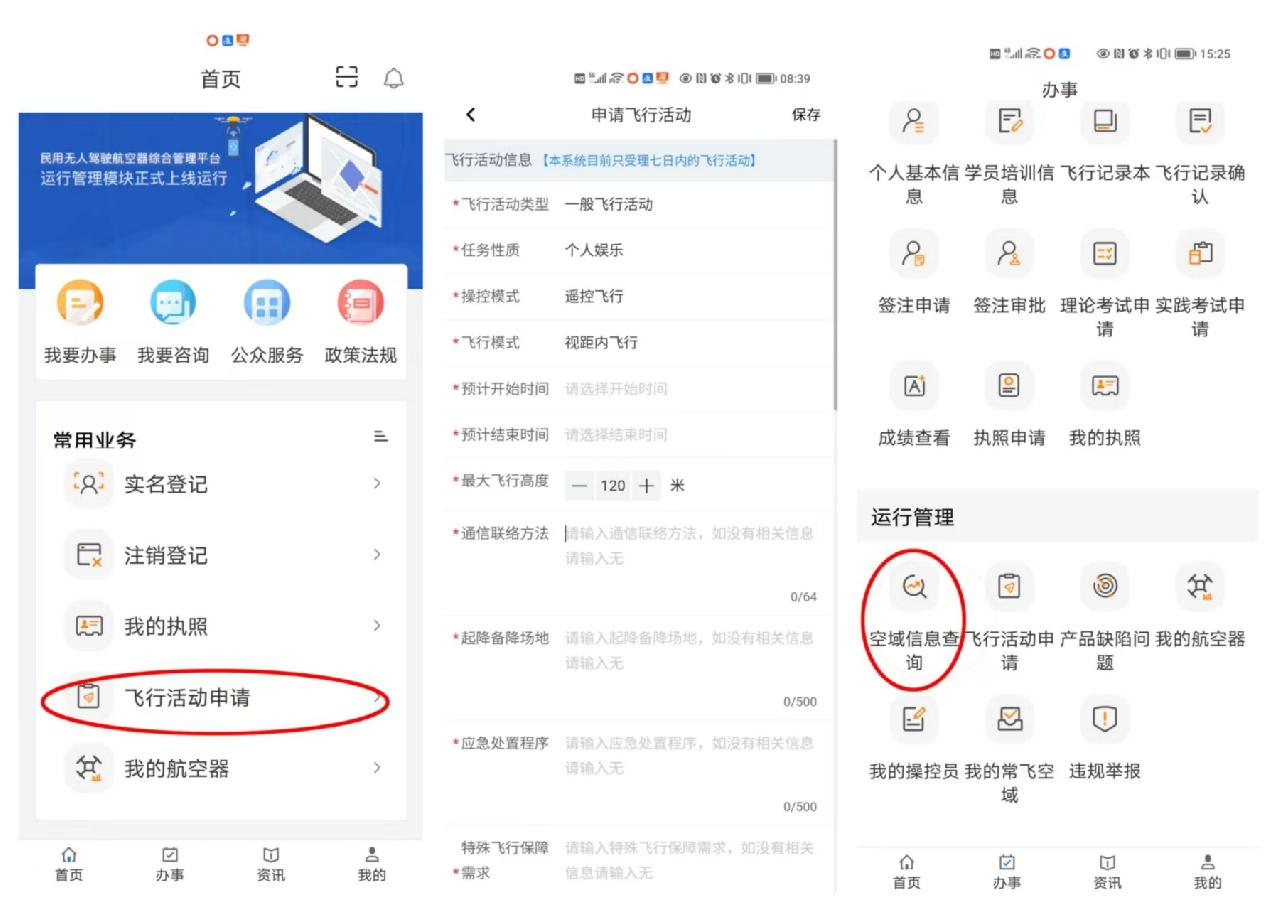 通过UOM平台(https://uom.caac.gov.cn/)进行飞行活动申请并获批,也可在平台上查询空域信息。未获批的飞行活动均是违法行为。