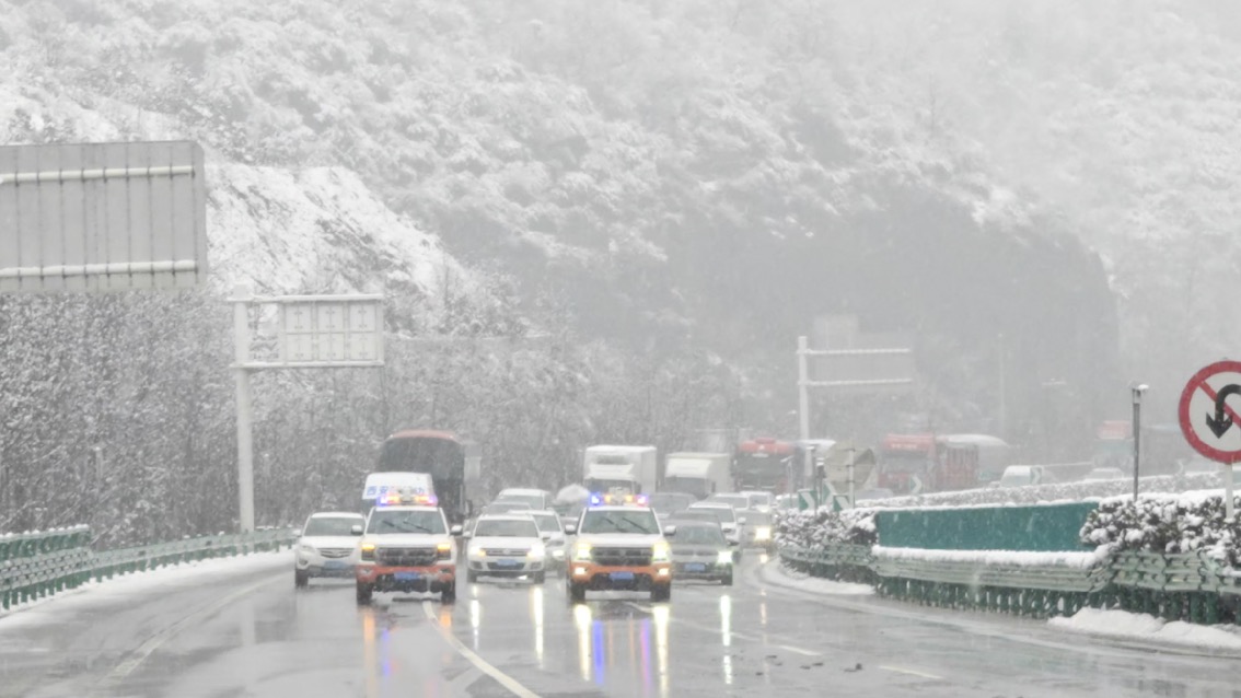 陕西再遇强降雪 交通部门压速带道护航归途
