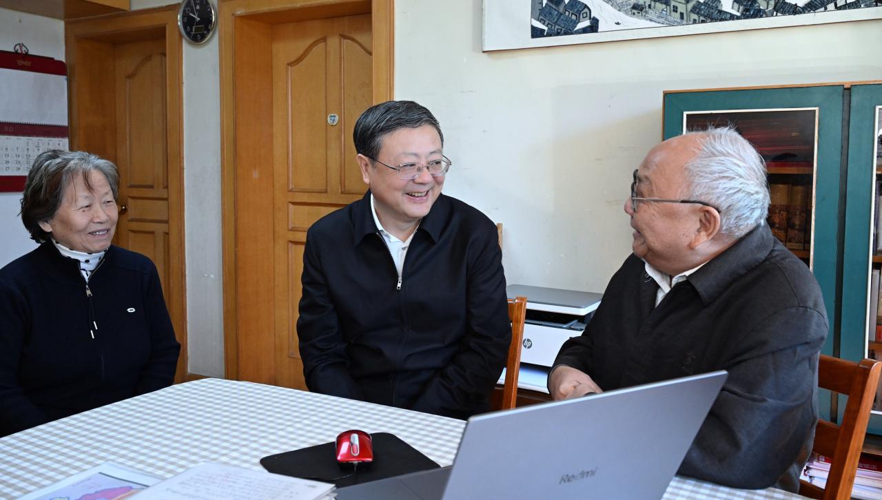 随后,陈吉宁登门看望了盛昌旦老人,向老人致以节日祝福。盛昌旦年轻时曾支援新疆建设,退休后继续发挥所长,积极投身志愿服务和宣讲活动。老人打开刚刚制作完成的PPT告诉市领导,前不久赴新疆开展了一个多月的交流宣讲,以亲身经历讲述这些年的发展巨变,结合学习党的二十届四中全会精神,又对宣讲提纲作了更新调整。陈吉宁为盛昌旦老人依托所长服务基层群众、向社会积极传递正能量的精神风貌点赞,鼓励老人继续发挥余热,讲好党的故事、中国故事。陈吉宁说,要为老年人“老有所为”、发挥作用提供更多平台、创造更好条件,引导老年人保持老骥伏枥、老当益壮的健康心态和进取精神,在参与社会生活、志愿服务中发挥正能量,为上海人民城市建设贡献“银发力量”。