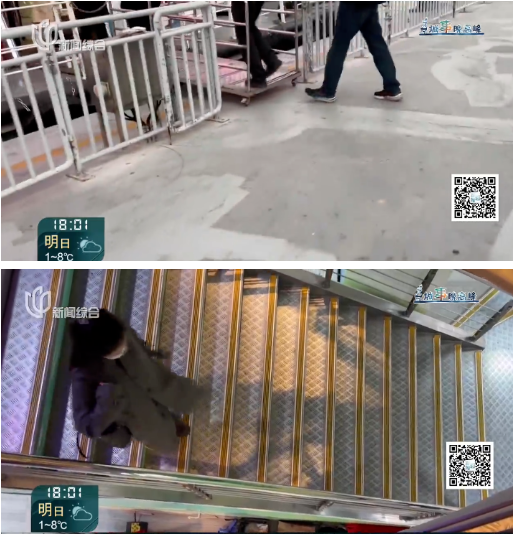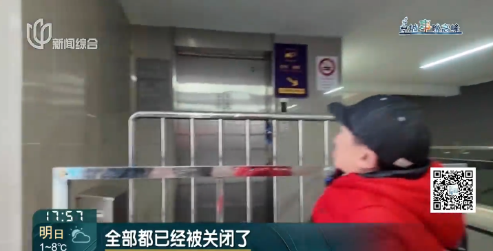 我们可以看到这边,它的扶梯也好、无障碍电梯也好,全部都已经被关闭了,我们是没有办法通过台阶下楼去换票的。