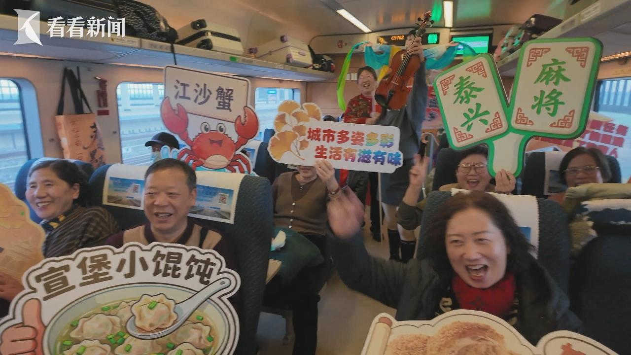 2025年岁末,由上海铁路局牵头开行的“泰州游”旅游专列正式启程,600多名上海游客乘坐专列开启三日游行程。