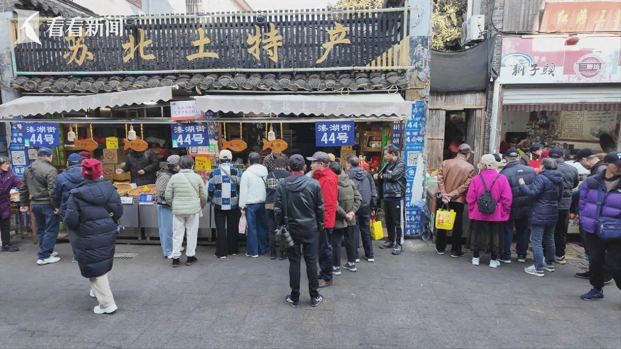 在姜堰区溱潼古镇,商户们切实感受到了赛事带来的红利。商户陈志娟告诉记者:“往年11月到12月底是淡季,现在生意好了很多,多亏了足球赛事的带动。”另一位商户沈冬梅也直言:“苏超给我们带来了财气,生意好得不得了。”来自上海的游客更是满载而归,溱潼鱼圆、黄桥烧饼、大闸蟹成了热门伴手礼。