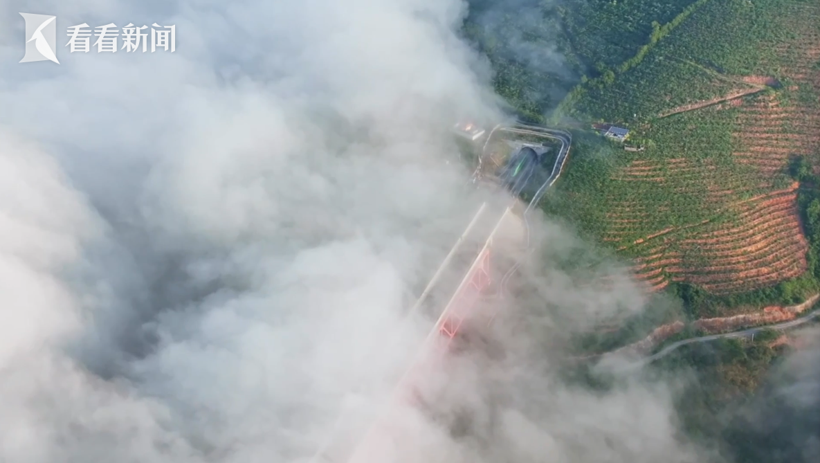 中老铁路元江特大桥跨越峡谷,列车穿行其间,尽显宁静磅礴之美。