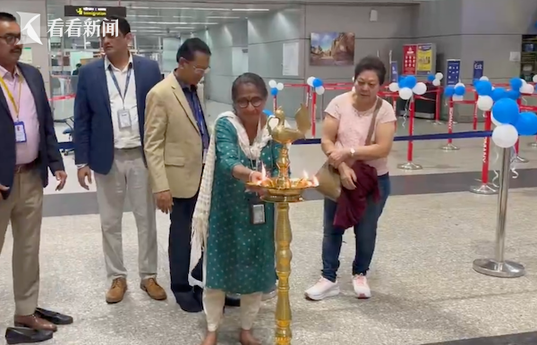 该航班搭载176名乘客,机场为此举办了开航仪式,由乘客们亲手点亮油灯。