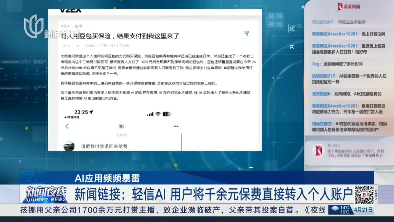 AI应用频频暴雷 新闻链接:轻信AI 用户将千余元保费直接转入个人账户