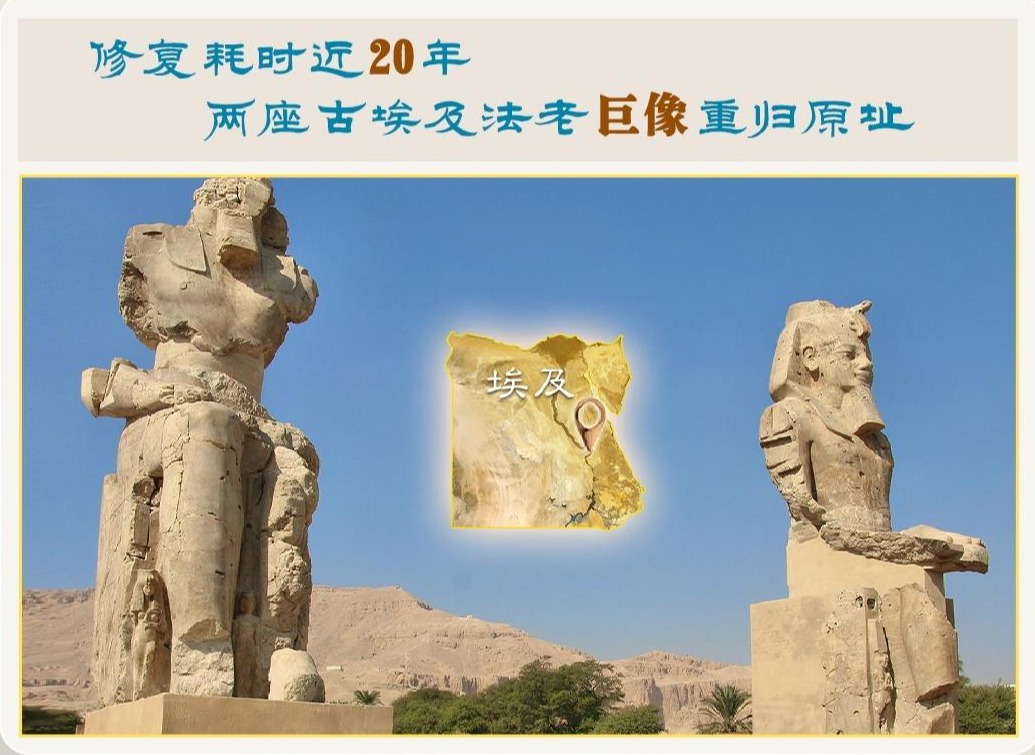 经过近20年的修复与重组,两座属于古埃及法老阿蒙霍特普三世的巨型雕像,重归埃及南部卢克索的原址与公众见面。阿蒙霍特普三世是著名法老图坦卡蒙的祖父,约3400年前在古埃及文明的繁盛时期,统治着尼罗河沿岸至叙利亚的广阔地区。