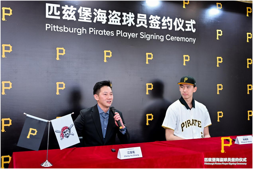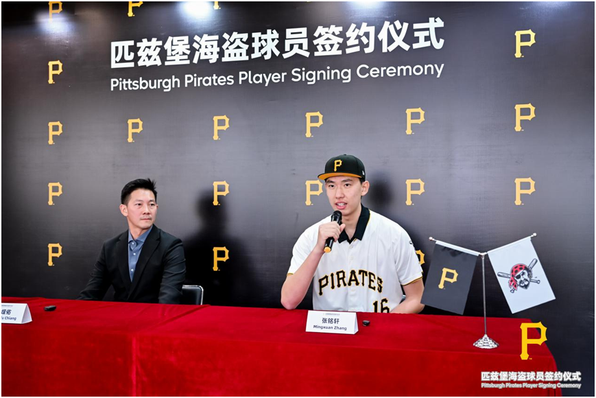 MLB匹兹堡海盗队国际球探部副总裁首席助理江埕佑表示:“张铭轩罕见的身材天赋、对技术的钻研精神以及出色的自我管理能力,是让我们决定与他签约的关键。海盗队拥有完善的培养体系,我们将为他制定系统的发展计划,期待他的快速成长。”