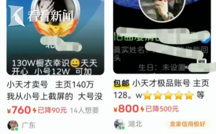 小朋友渴望拥有高赞账号、成为大佬的攀比虚荣心理也催生了灰色的账号交易现象。有人专门养号出售,交易平台上,可以看到一些已养成的“大佬”账号在售,一个30多万点赞的账号挂价近300元,一个“天才秀装饰全有”的22万多主页点赞的账号挂价500多元,“99W+”的账号甚至可以卖到800元。但网络平台鱼龙混杂,未成年人更难以分辨真伪,被欺诈的情况难免发生。
