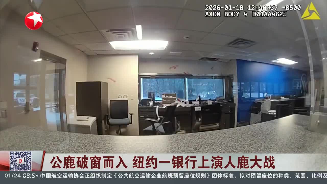 公鹿破窗而入 纽约一银行上演人鹿大战
