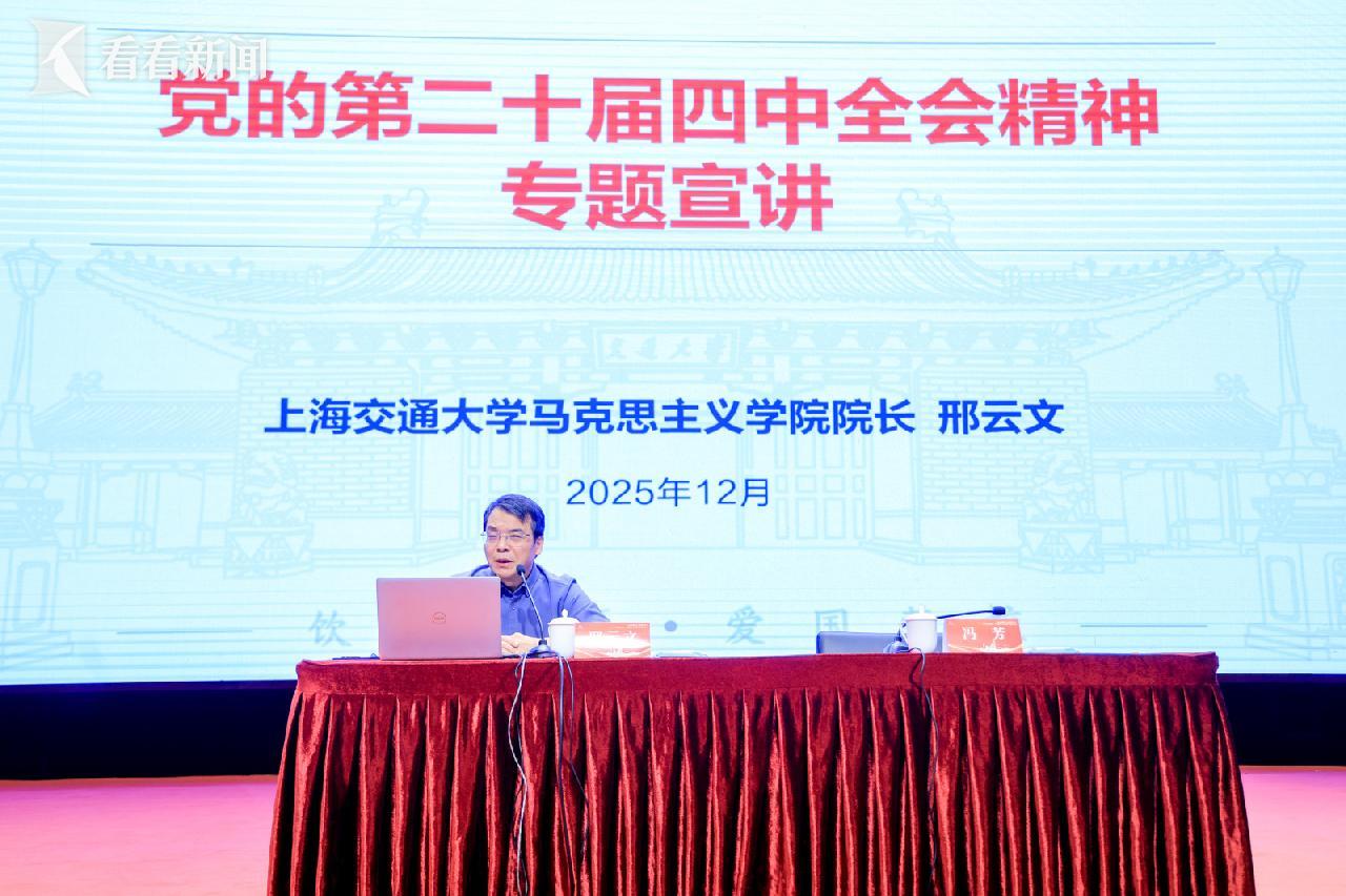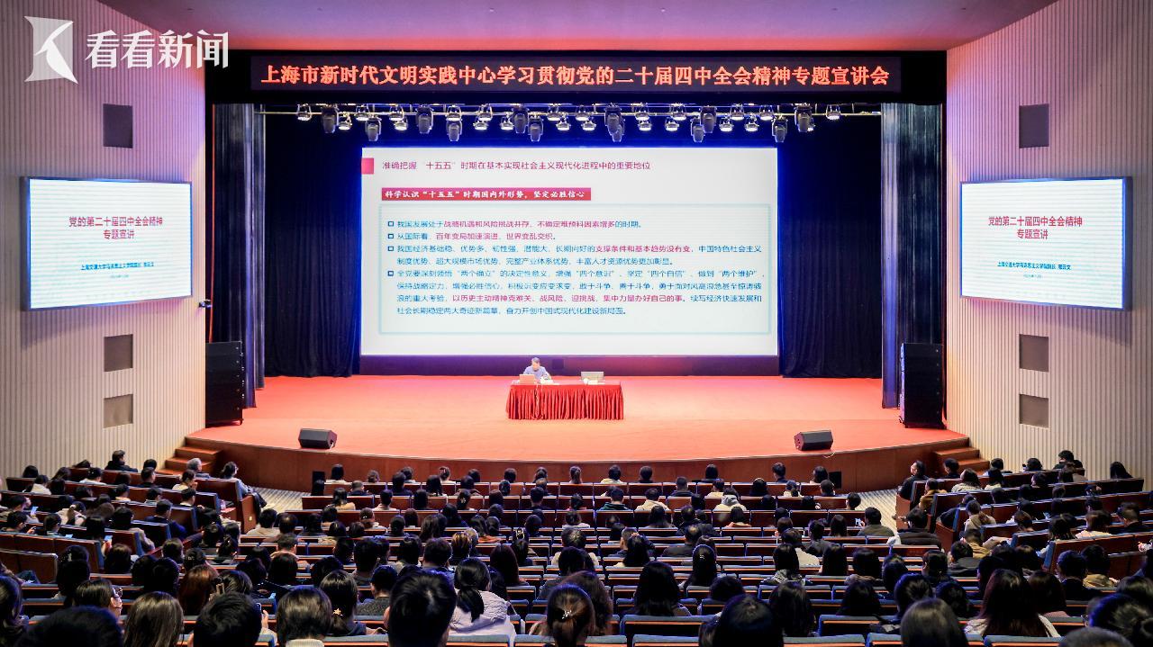 为深入学习贯彻党的二十届四中全会精神,进一步提升基层宣传队伍的理论水平,2025年12月8日下午,市精神文明办在浦东新区新时代文明实践中心举办上海市新时代文明实践中心学习贯彻党的二十届四中全会精神专题宣讲会,特邀上海交通大学马克思主义学院院长邢云文教授作专题宣讲。上海市精神文明办专职副主任冯芳出席会议并主持。各区精神文明办相关负责人、新时代文明实践中心(分中心)的宣传骨干、新时代文明实践理论宣讲品牌团队的成员,以及文明单位的宣传工作者代表等近400人参加会议。