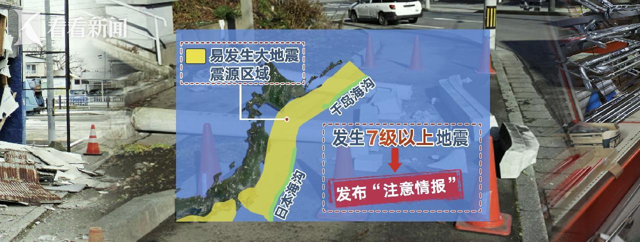 根据这一机制,日本海沟和千岛海沟周边被设定为易发生大地震的震源区域,这一区域发生7级以上地震即可发布“注意情报”。“注意情报”发布后,从北海道到千叶县的7县域182个市町村在未来一周维持日常社会活动的同时,还需做好可能的地震防灾和避难准备。