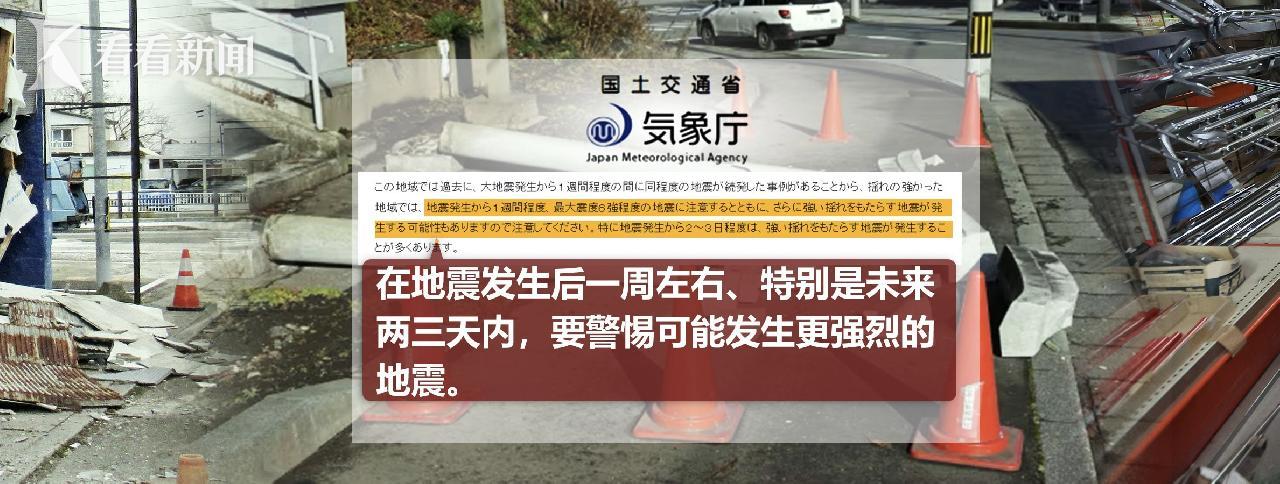 此次地震后,日本气象厅已发出提醒,呼吁当地民众警惕未来一周左右的时间内可能再次发生类似震级的地震。